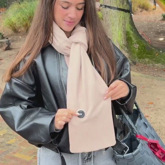 De PowerScarf is volledig door onszelf ontwikkeld, van stofkeuze en pasvorm tot de karakteristieke vorm. Bij de ontwikkeling hadden we een duidelijk doel voor ogen: een verwarmbare sjaal die je óók zonder de warmtefunctie zou willen dragen.